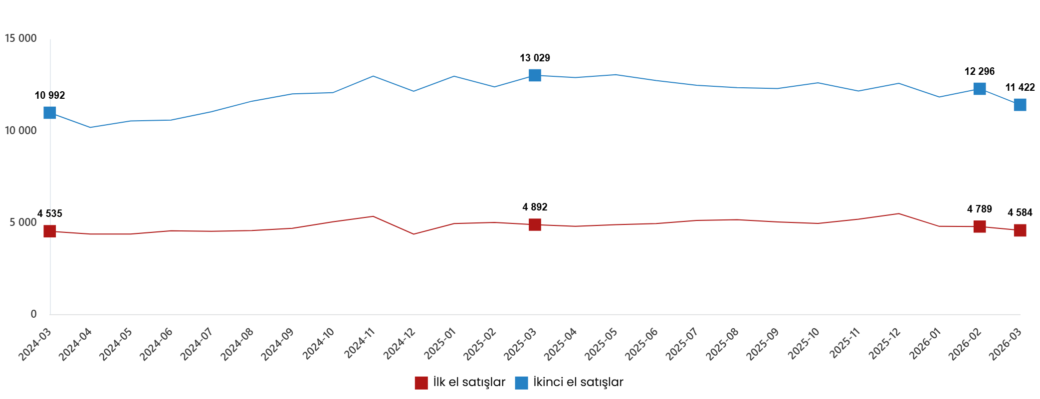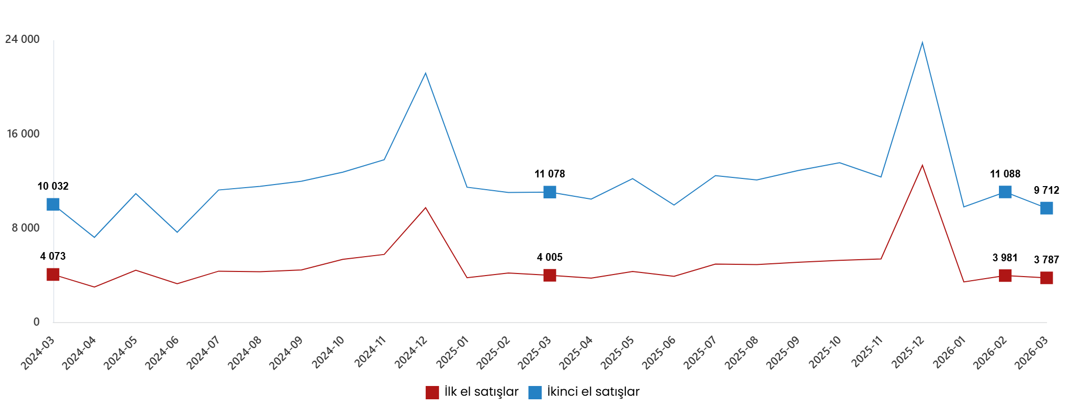 | İlk el satış | 3 787 | 4 005 | -5,4 | 11 212 | 12 000 | -6,6 |